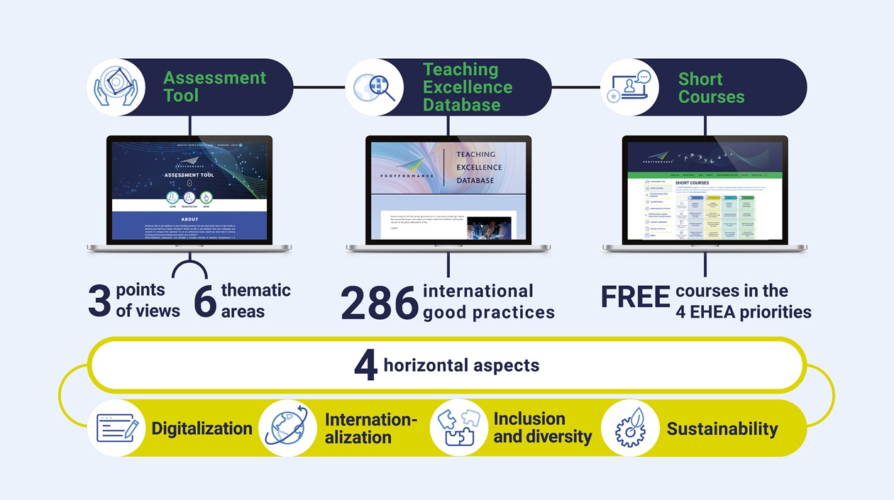 ElőretekintésA PROFFORMANCE+ eredményei fontos mérföldkövet jelentenek egy innovatívabb, befogadóbb és versenyképesebb Európai Felsőoktatási Térség kialakításában. A jó gyakorlatok folyamatos megosztásával és az együttműködések erősítésével a projekt hosszú távon is hozzájárul ahhoz, hogy az oktatás és a tanulás minősége Európa-szerte tovább emelkedjen. |