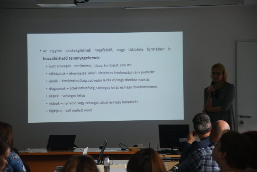 A műhely témája: a speciális igényű hallgatók tanulásának módszertani támogatási lehetőségei felsőoktatásban folytatott tanulmányaik során. Az Európai Unió célkitűzése, hogy az Európai Felsőoktatási Térségben a társadalom összetétele leképeződjön a felsőoktatásban, azaz támogatni szükséges a valamilyen hátránnyal, nehézséggel küzdő hallgatók felsőoktatási életútját a bejutástól a sikeres végzés utáni elhelyezkedésig. Az oktatók, ha találkoznak akár dislexiás, disgráfiás, akár bármilyen figyelemzavaros, vagy egyéb téren akadályozott, esetleg speciális élethelyzetben lévő hallgatóval, jó, ha rendelkeznek olyan módszertani és eszközismerettel, amely révén célzottan támogatni tudják a hallgatók tanulását.