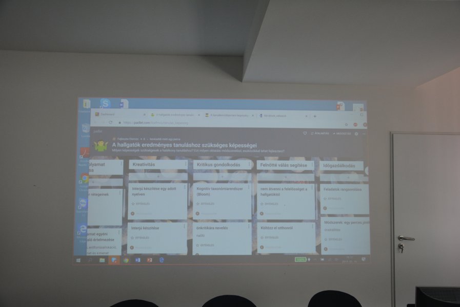 | 15.30 – 16.30 | Tudáscsere, módszertani ötletelés adott probléma kapcsán 1. A hallgatók tanuláshoz szükséges képességei 2. A szükséges képességek fejlesztésének módszerei 3. A képességek fejlesztéséhez szükséges oktatói kompetenciák és megszerzésüknek lehetőségei |