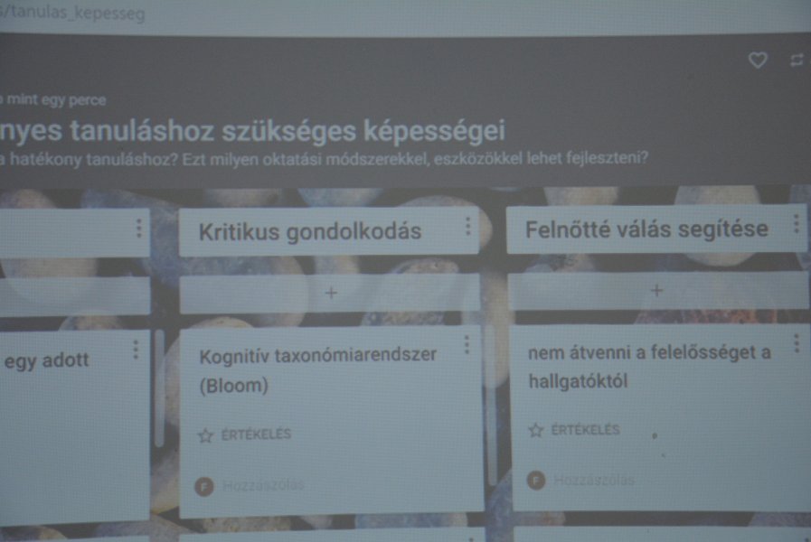 | 14.45 – 15.30 | II. blokk – bemutatók 1. Dr. Kővári Edit – Pannon Egyetem - Let’s learn how to learn (LELLEUP) 2. Dr. Lazányi Kornélia – Óbudai Egyetem - Tanítva tanulni 3. Janurikné Soltész Erika - Szent István Egyetem - 21. századi tanulásmódszertan |