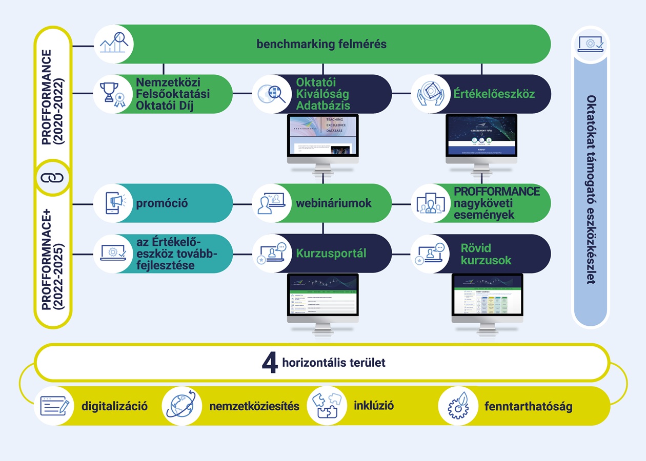 A PROFFORMANCE+ célja a felsőoktatás fejlesztése és versenyképességének erősítése. Az EHEA prioritásainak mentén a projekt a tanítás és tanulás minőségének javítását tűzte ki célul, hogy az oktatói munka valódi értéket teremtsen a hallgatók, az intézmények és a társadalom számára.